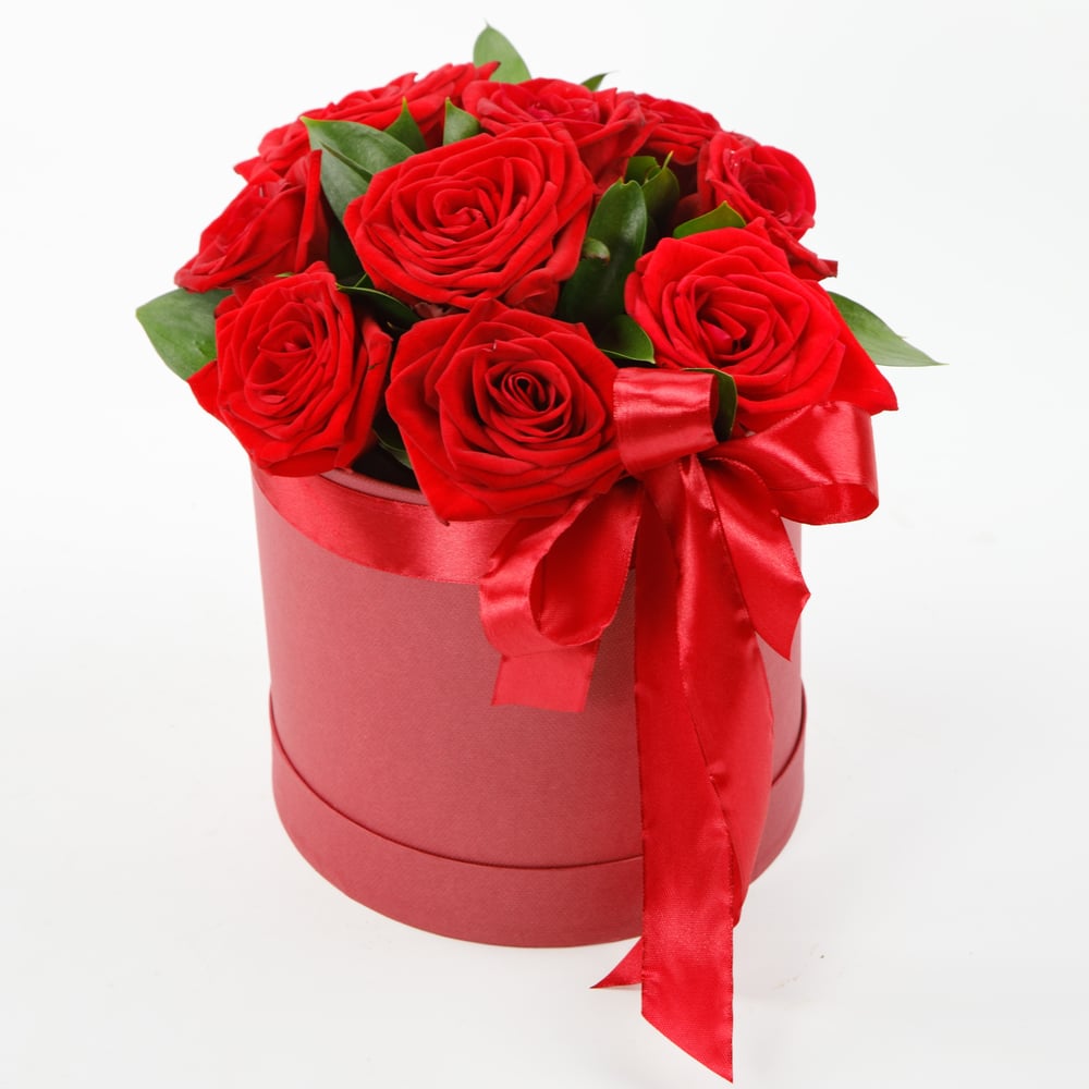 Композиция «Цветы в коробке 9 красных роз "Поцелуй"»