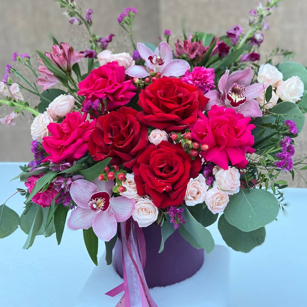 Яркая, насыщенная композиция «Кармен» создана для ценителей томной роскоши оттенков бургундского вина .. и вечной классики красных роз, для смелых признаний и страстных эмоций. Отлично подойдёт на ...