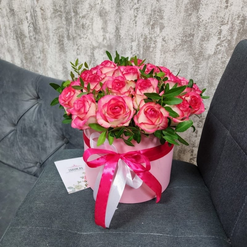 Шляпная коробка с цветами «Твоя улыбка» из роз