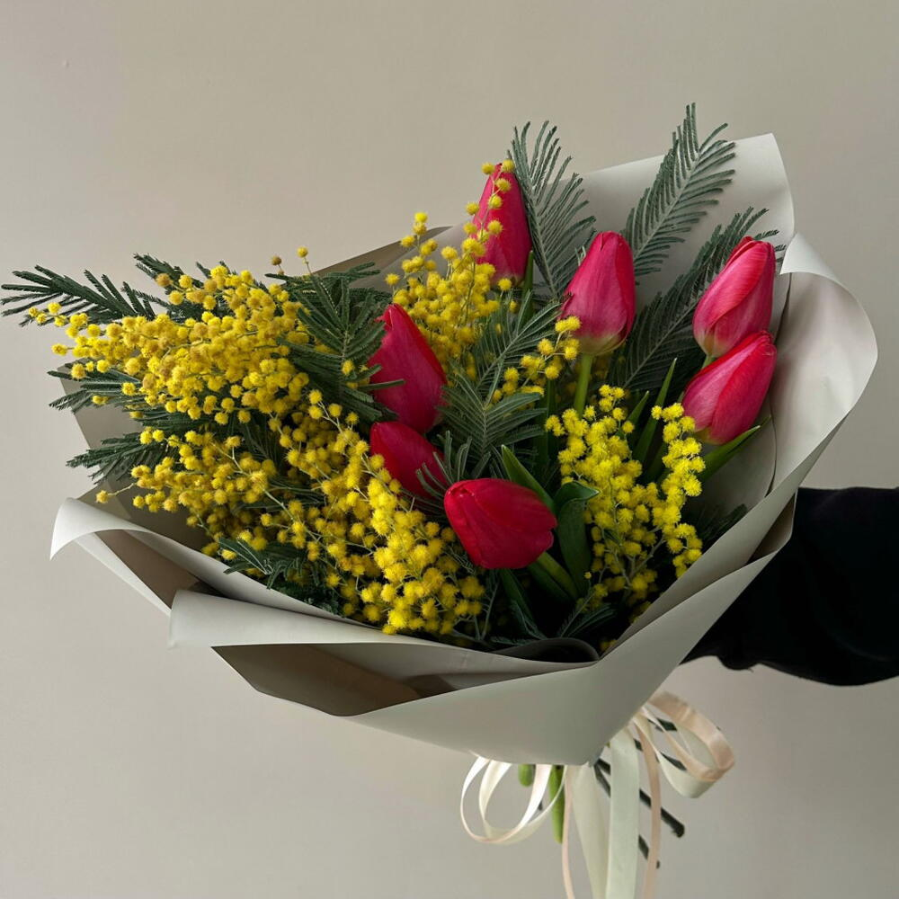 Букет «Тюльпаны, мимоза»