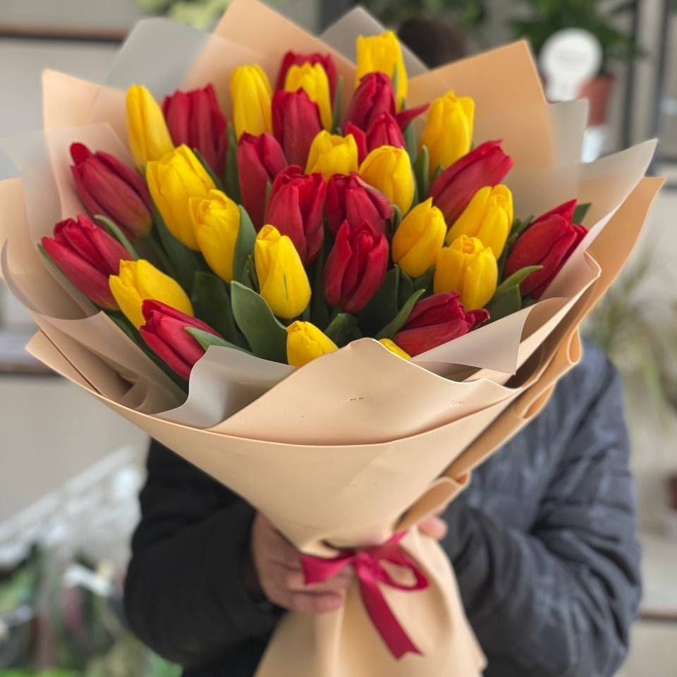 Букет «Тюльпан 51 в красно-желтом цвете»