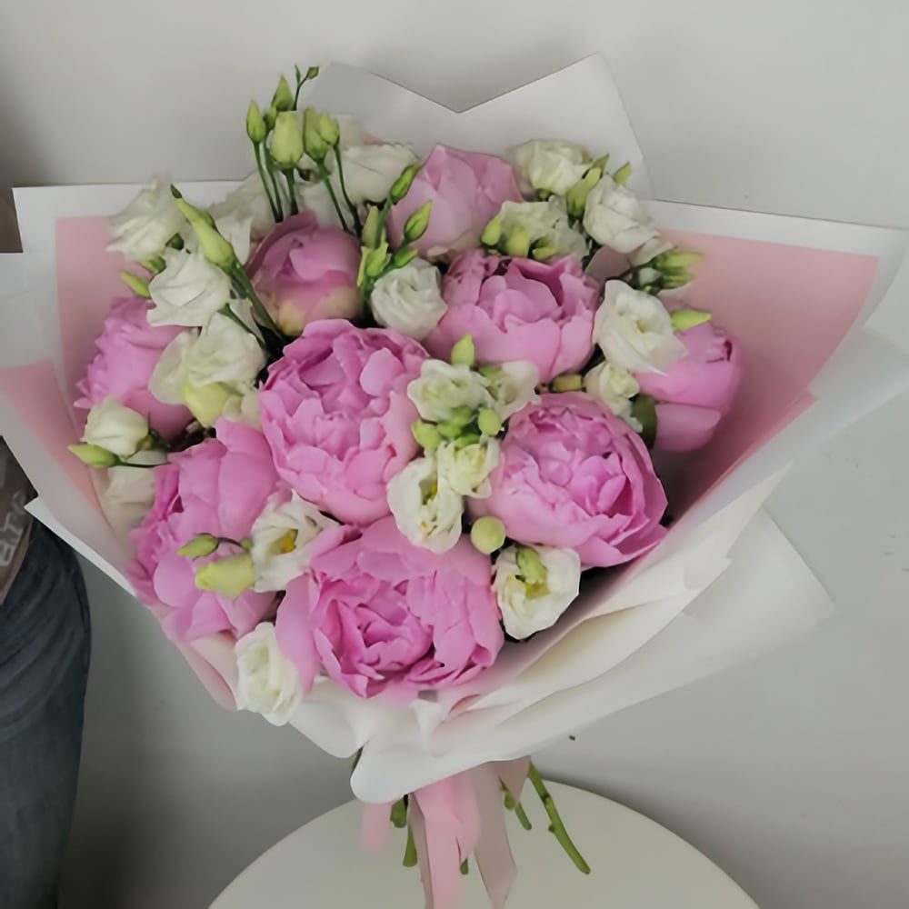 Букет «Утренняя симфония» из пионов и эустом