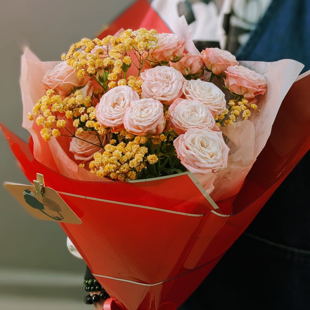 Букет «Валентинка» из роз и гипсофил