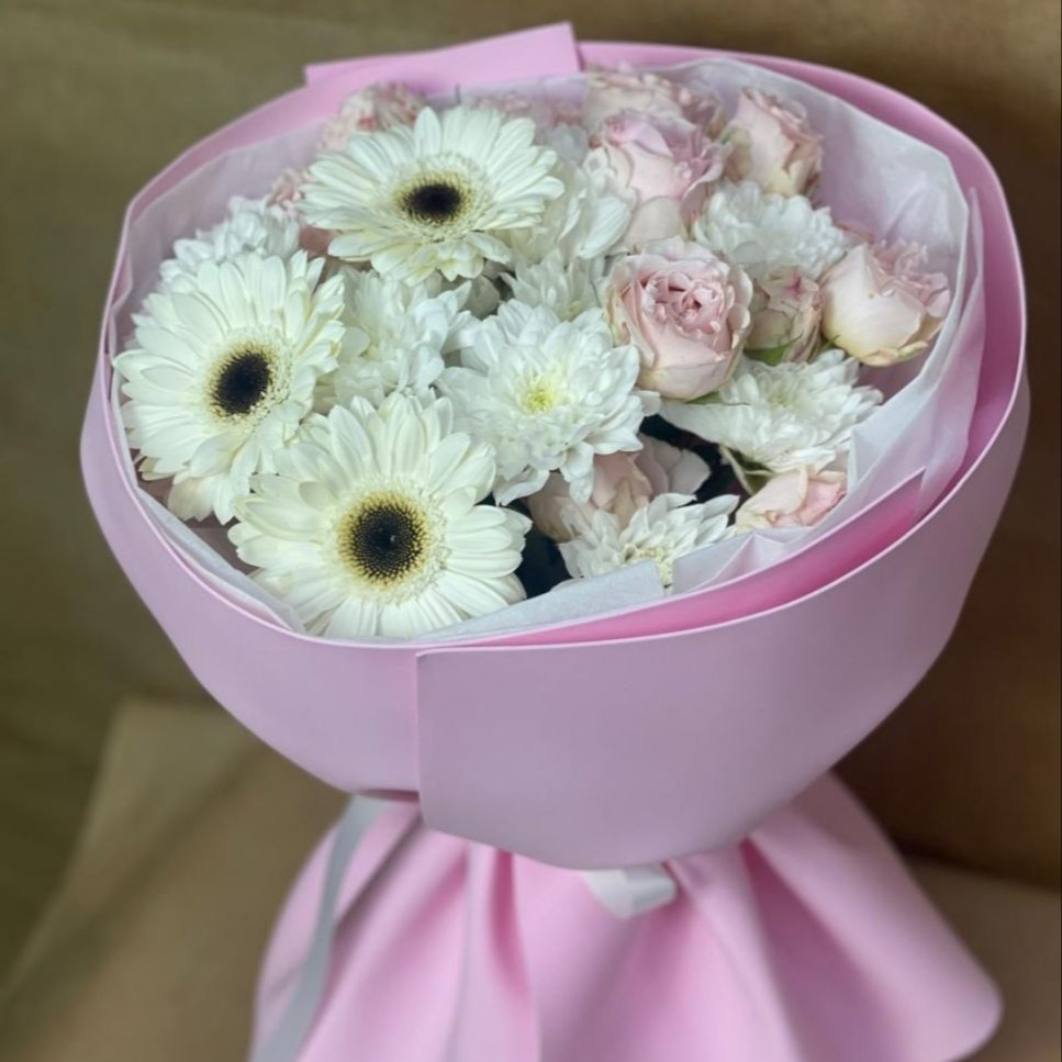 Букет в нежных тонах порадует любого получателя и подарит хорошее настроение!
