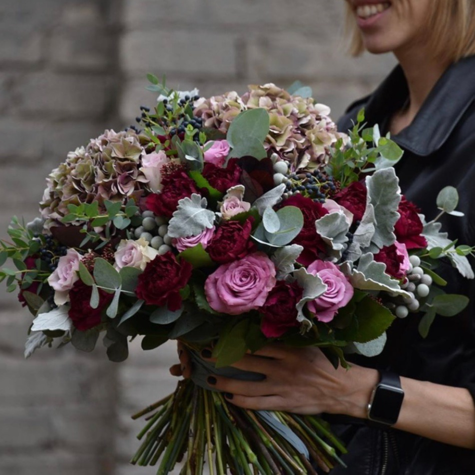 Букет «Вечер» из роз и гортензий