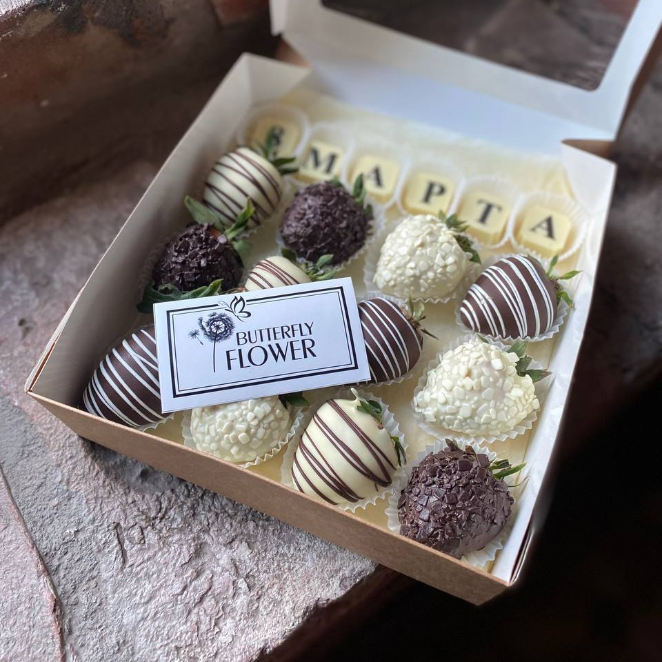 Композиция из клубники в шоколаде в дизайнерской коробке