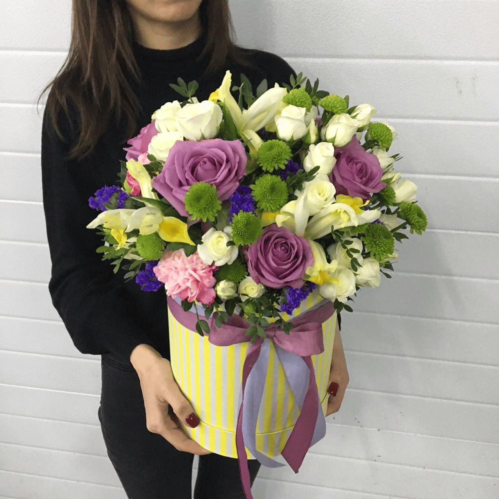 Насыщенная стильная композиция в нежных тонах, для выражения самых ярких и искренних чувств! такая композиция, непременно создаст невероятный яркий бум эмоций у получателя!