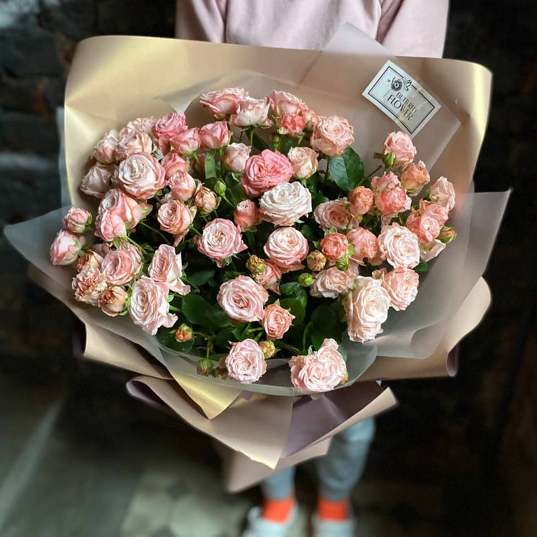 Букет из 19 пионовидных кустовых роз в стильной упаковке