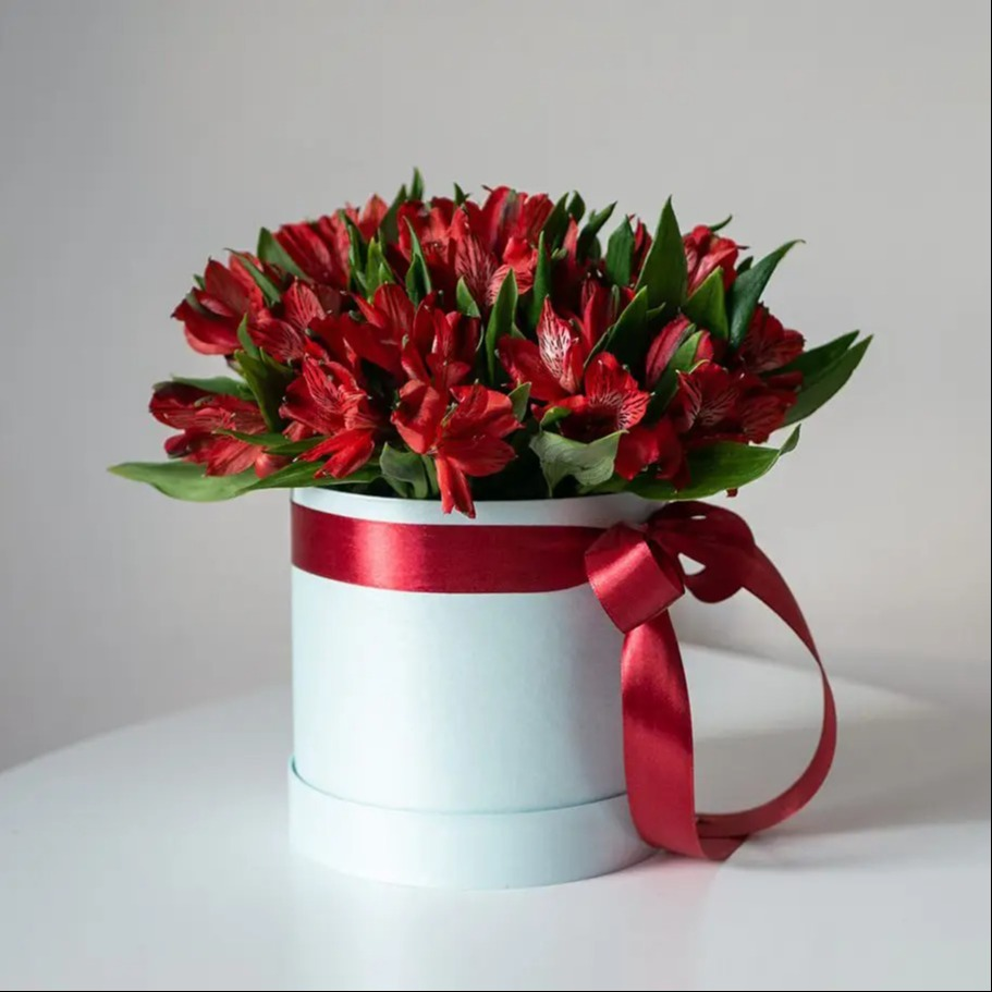 Шляпная коробка с цветами «Вириди» из альстромерий