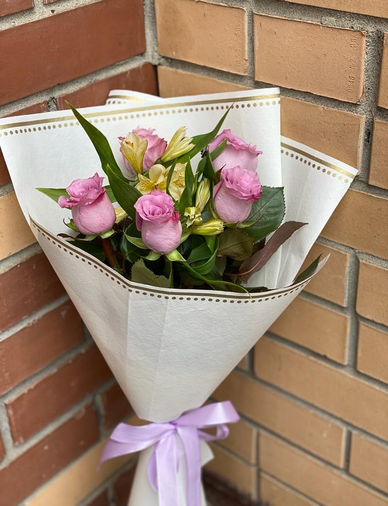 Букет «Витраж» из роз и альстромерий