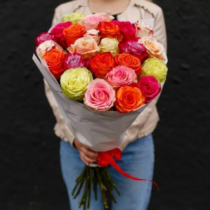 Яркий букет из роз разных сортов не оставит никого равнодушным!