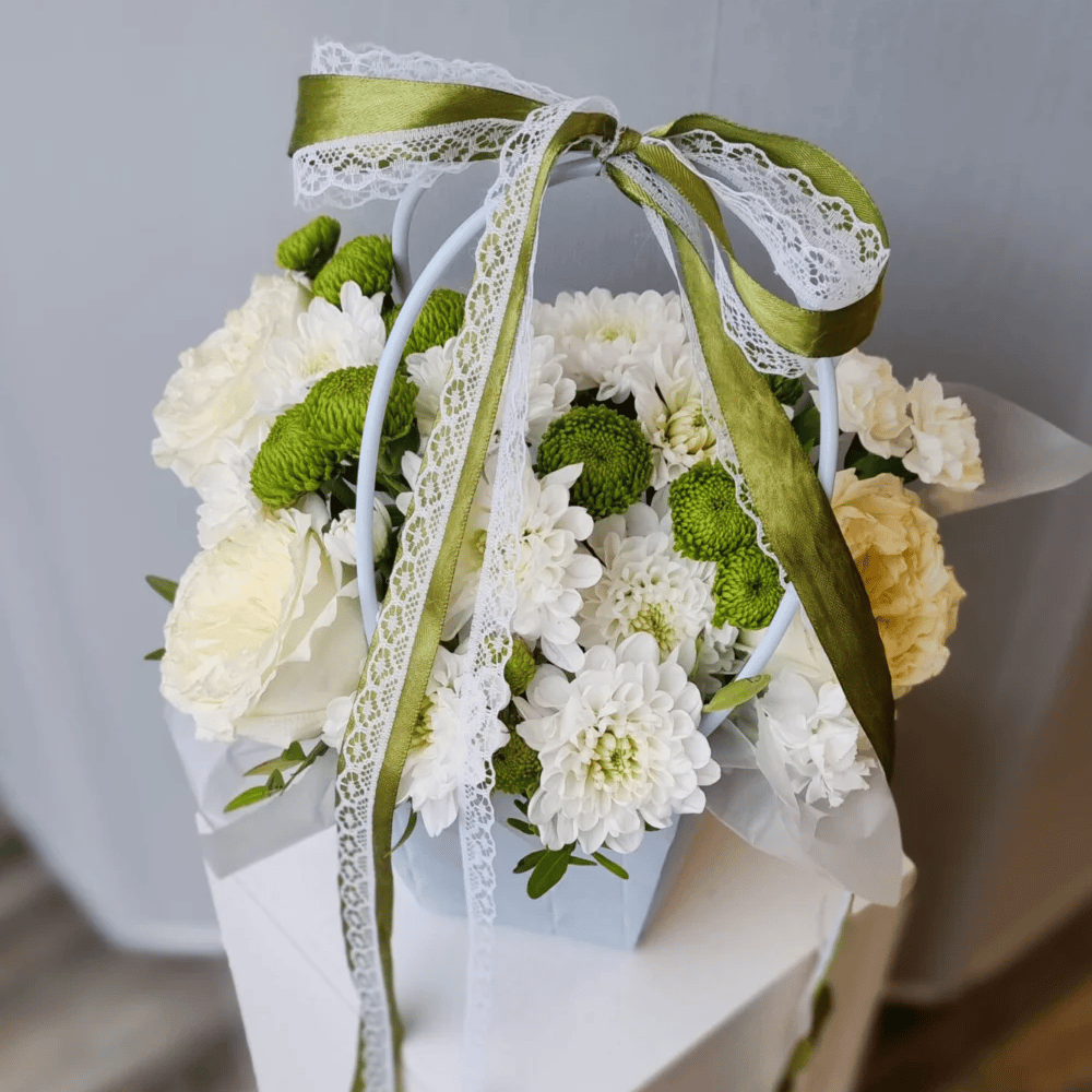 Коробка с цветами «Воспоминания о лете» из роз и хризантем