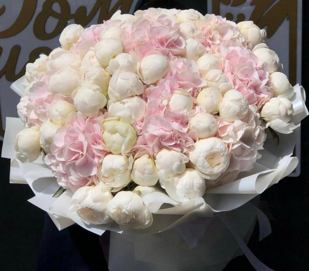 Букет «Воздушный поцелуй» из пионов и гортензий