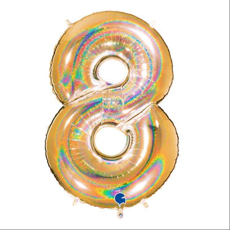 Фольгированный воздушный шар цифра 8 цвет голография. Размер:102см.