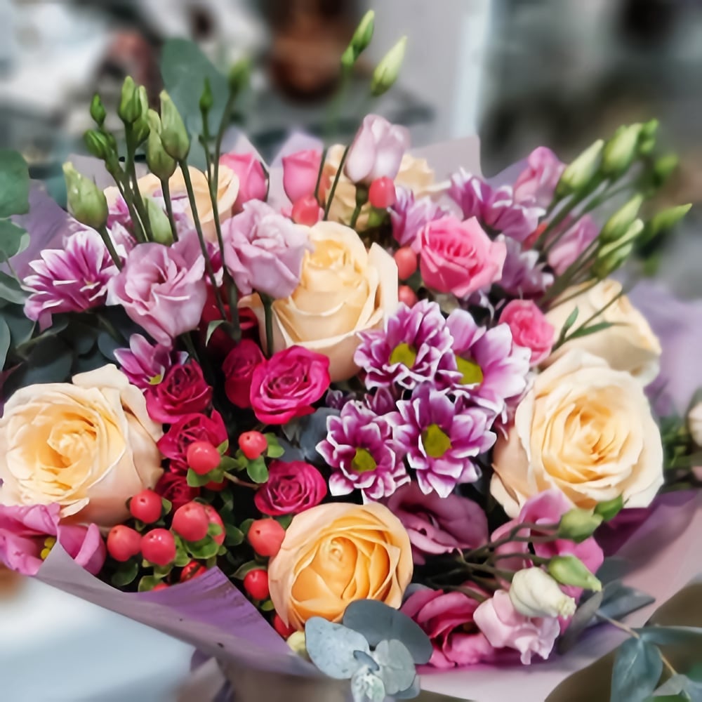 Букет «Все краски лета» из роз и эустом