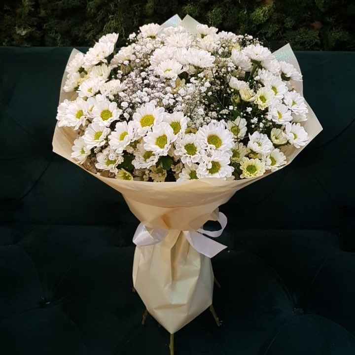 Букет «Встреченная в поле» из хризантем и гипсофил
