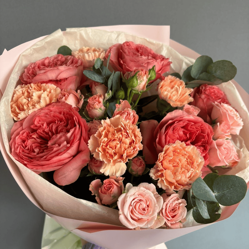 Букет «Эйфория» из роз и гвоздик