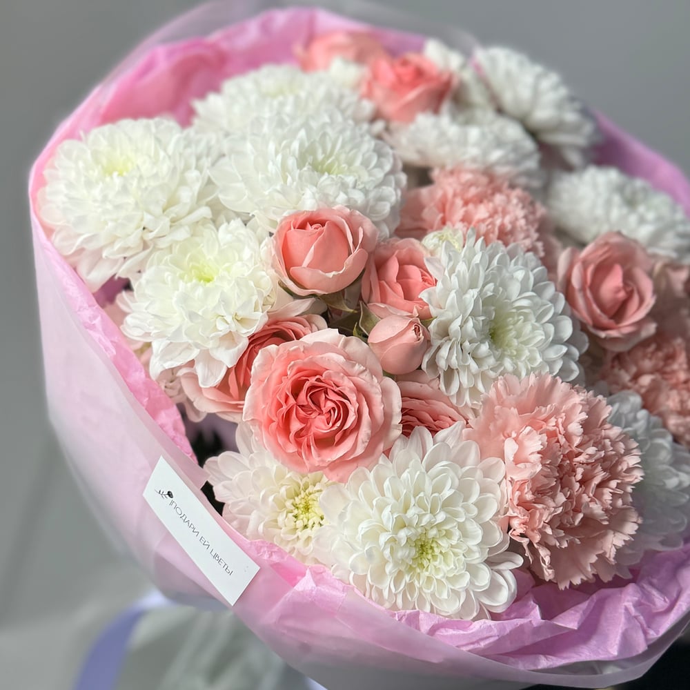 Букет «Яб купил» из гвоздик и роз
