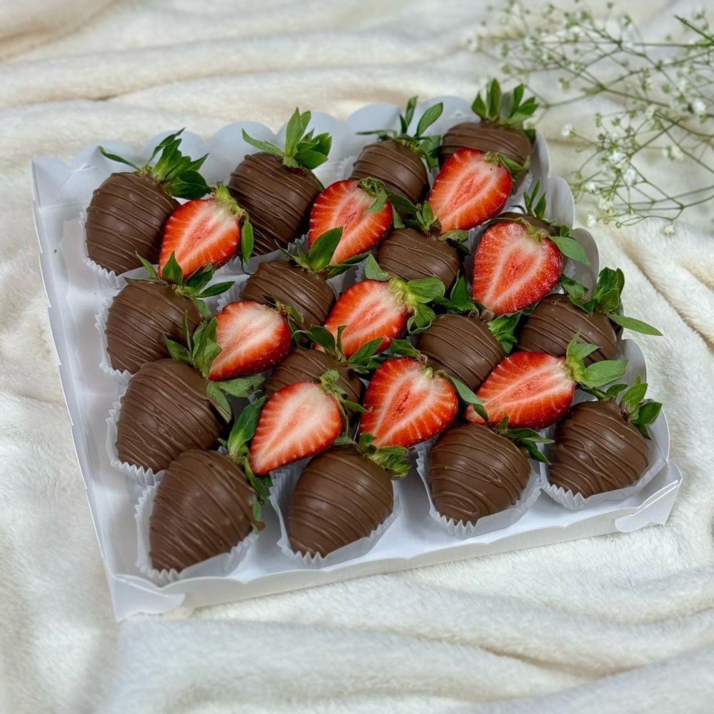 сочетание клубники в шоколаде и свежей клубники в одной коробке