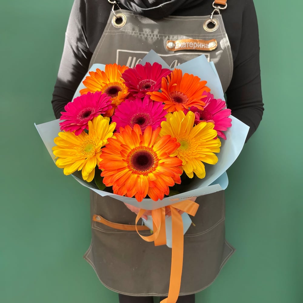 Яркий озорной букет из стойких гербер однозначно поднимет настроение !