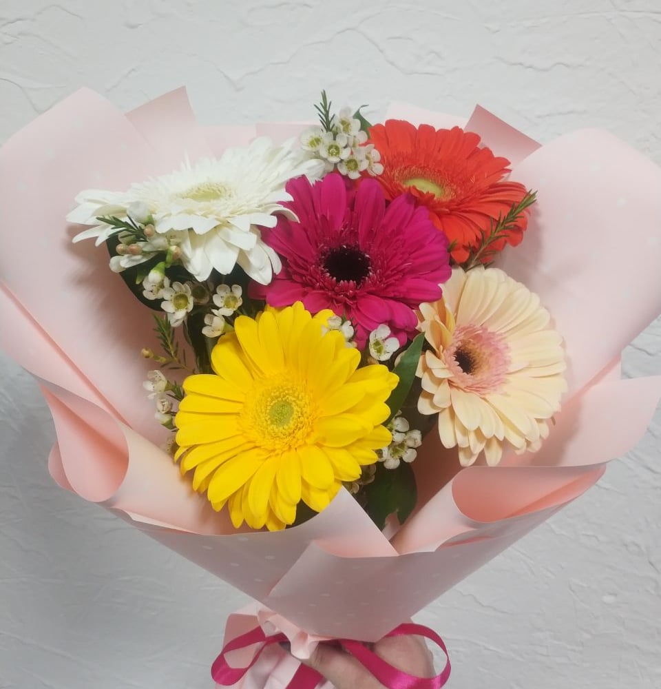Букет «Яркие краски» из гербер и ромашек