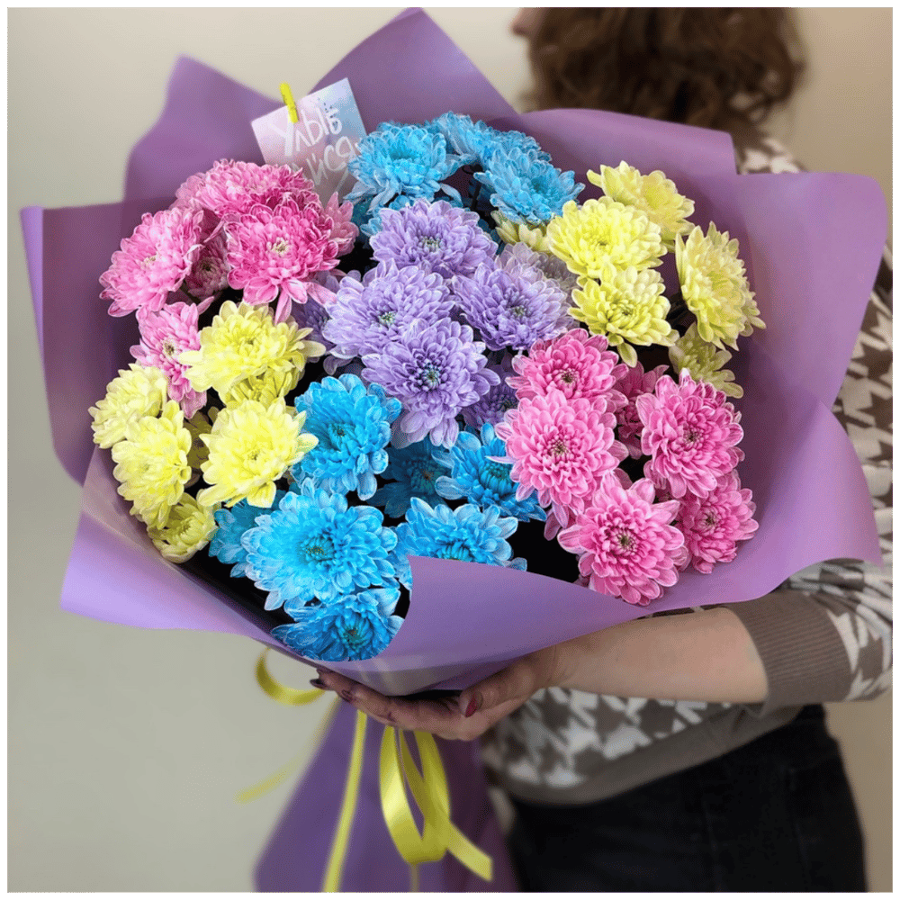 Яркий букет из цветных хризантем