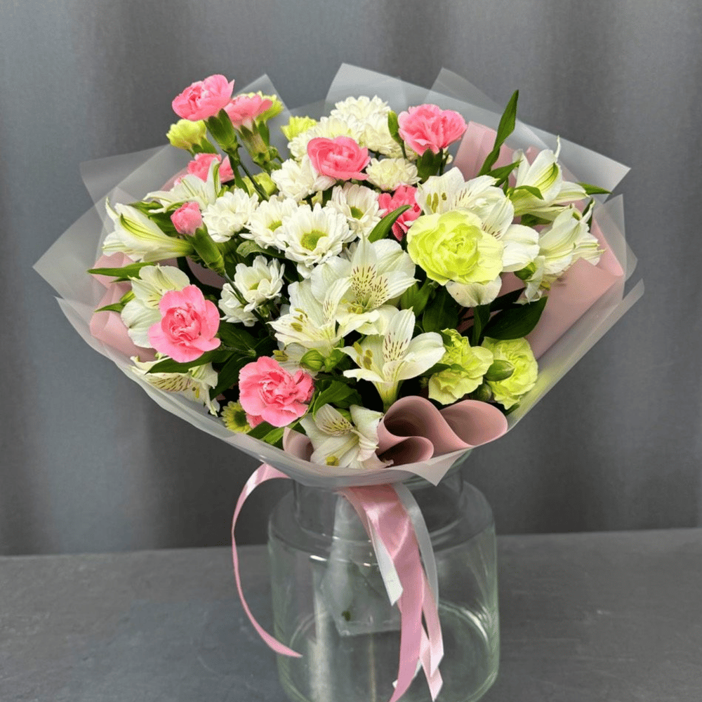 Этот букет, словно тёплые объятия близкого человека, наполнен солнечными и ягодными оттенками. Игривое настроение букета «КОКТЕЙЛЬ ЭМОЦИЙ» непременно вызовет яркие эмоции и поднимет настроение его получателю! ⠀ Авторские букеты от Центра Флористики в Красноярске - это всегда про эстетику и любовь к цветам. Мы любим неожиданные сочетания, яркие оттенки для самых веселых и нежные оттенки, для самых романтичных. ⠀ Состав: альстромерия - 3 шт., хризантема Сантини - 2 шт., диантус кустовой - 4 шт, упаковка, ленты