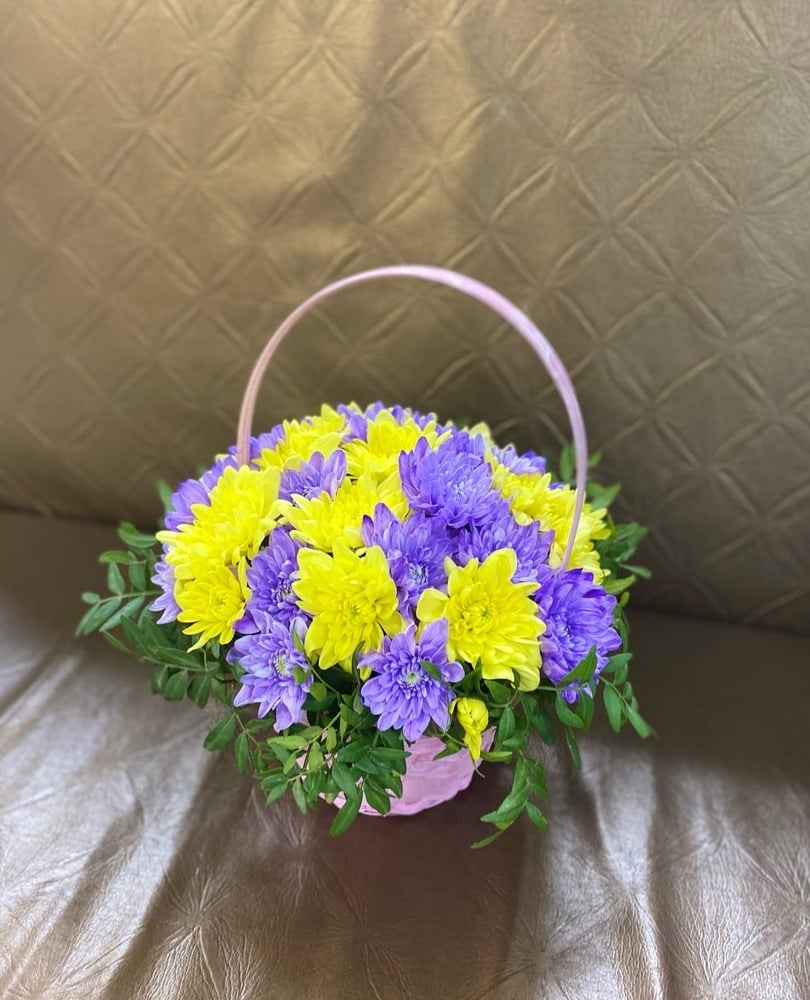 Корзина с цветами «Яркий день» из хризантем