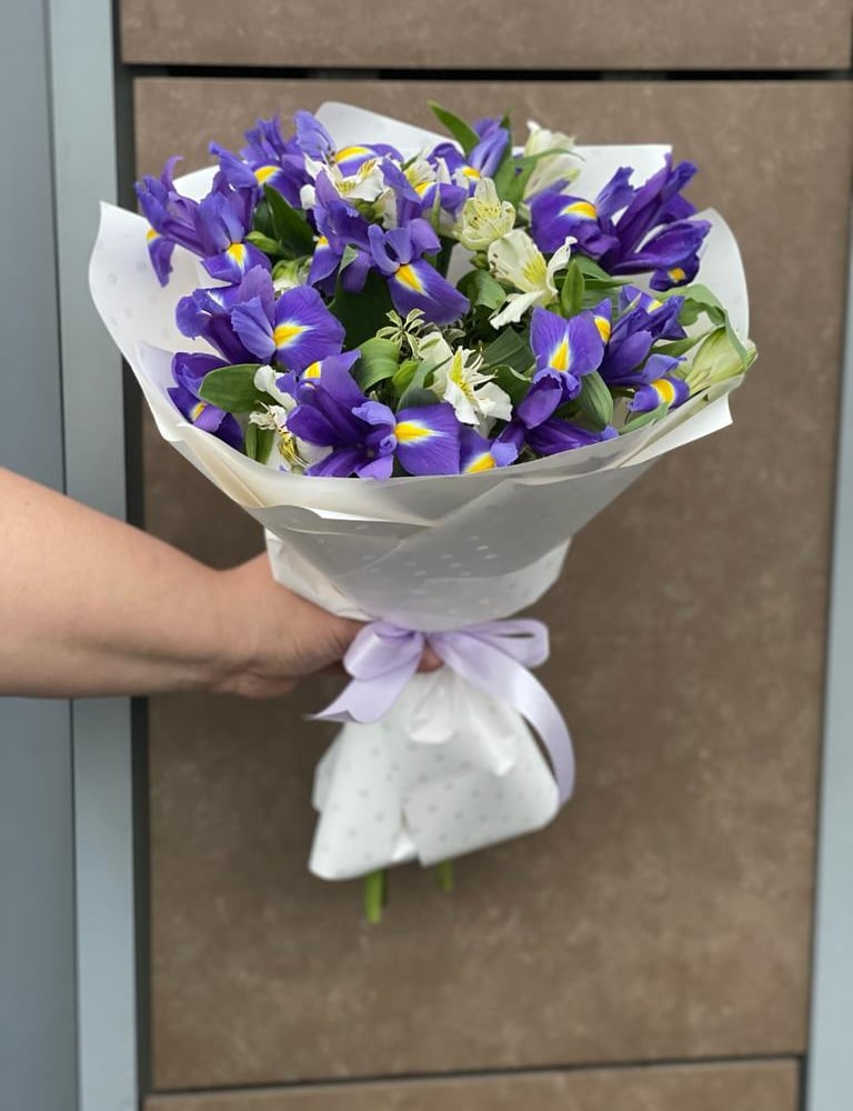 Букет «Яркий день» из ирисов и альстромерий
