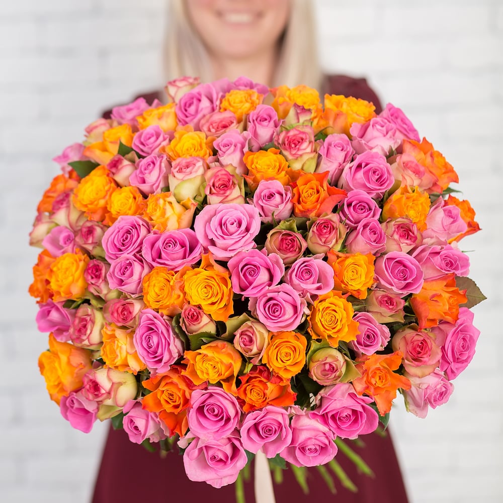 101 яркая роза в букете!