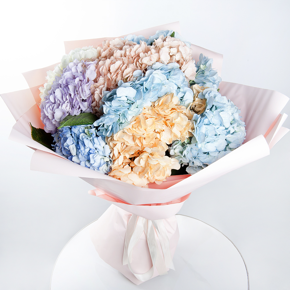 Букет «Яркий цветочный танец» — это феерия красок и эмоций, созданная из девяти великолепных цветов. Букет состоит из гортензий разных оттенков, которые вместе создают неповторимую гармонию цвета ...