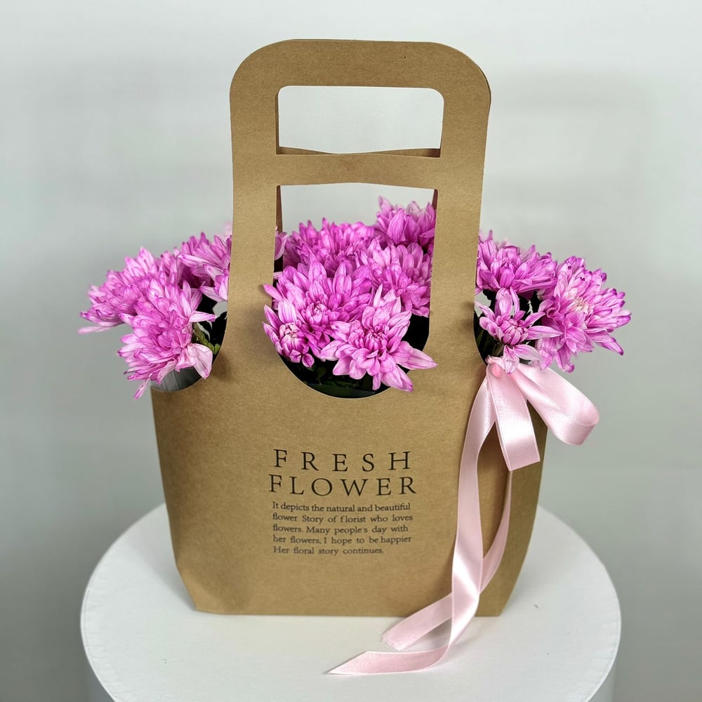 Коробка с цветами «Яркое мгновенье» из хризантем