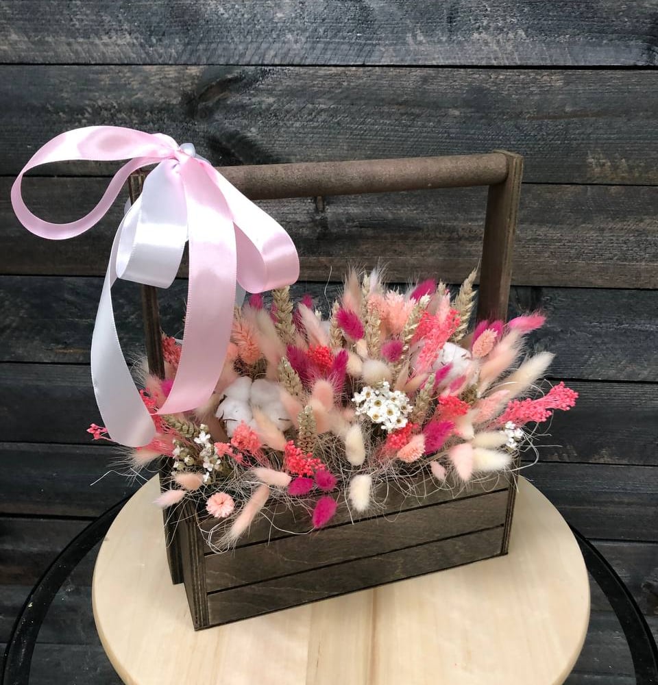 Ящик с сухоцветами "Розовое облако"