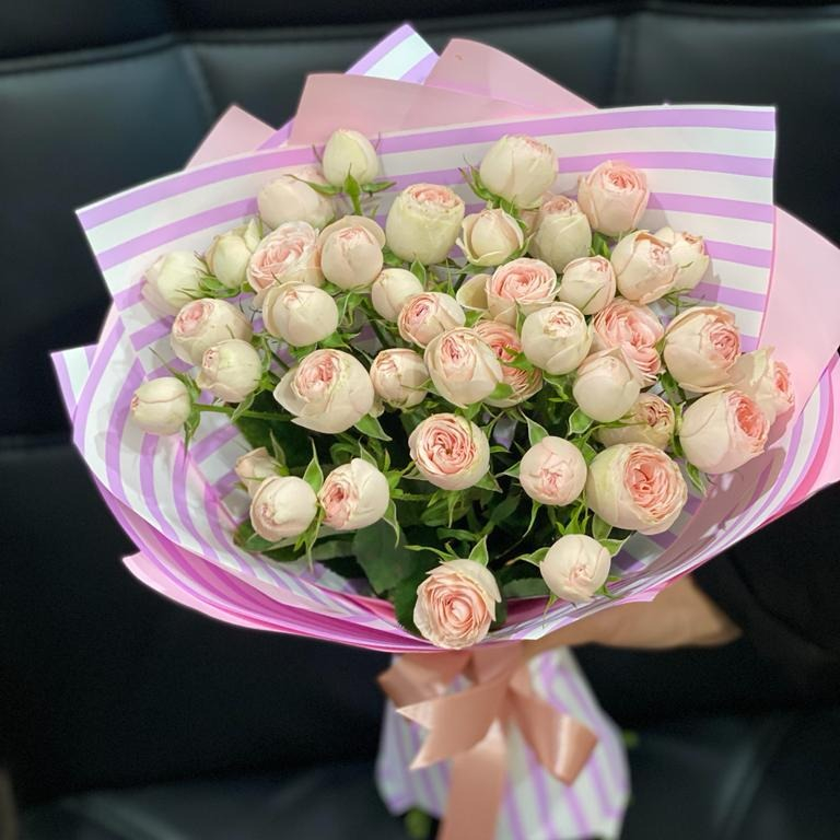 Нежный букет из кустовых пионовидных роз словно облачко из зефирок - сказочная прелесть !