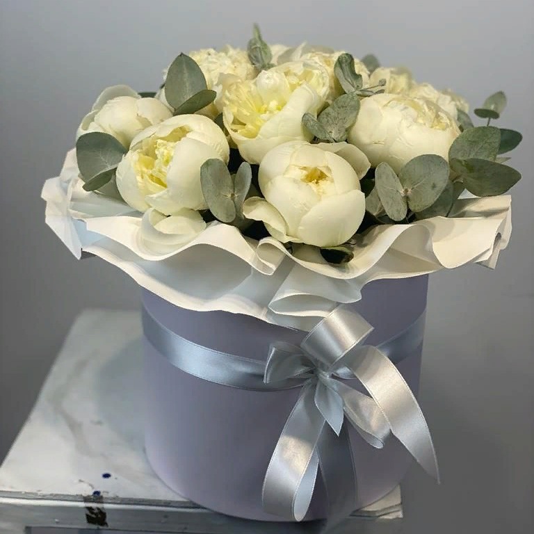Шляпная коробка с цветами «Зефирное время» из пионов