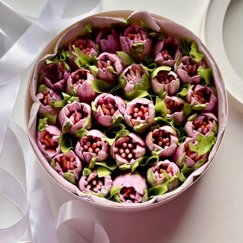 Нежный зефир в виде тюльпанов — красивый и вкусный подарок для любого повода! Каждый цветок выполнен вручную из натуральных ингредиентов: ягодного пюре, белка и сахара. Без искусственных красителей…