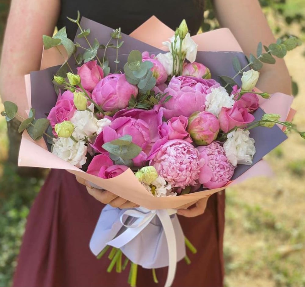Букет «Женственность» из пионов и эустом