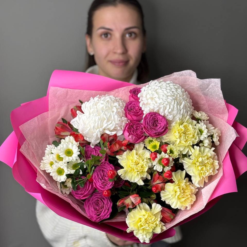 Букет «Зимний вечер с хризантемами» из альстромерий