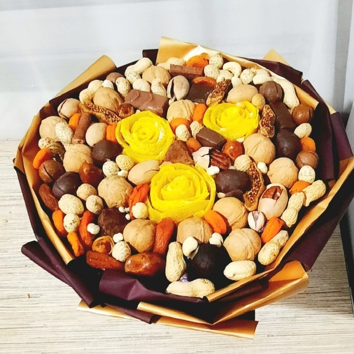 Букет из орехов,сухофруктов с добавлением шоколадных конфет