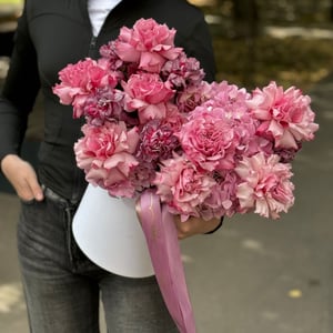 Шляпная коробка из пионовидных роз
