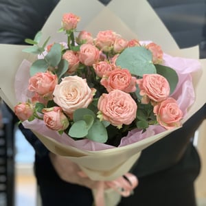 Букет «Персиковый поцелуй» из роз и гвоздик