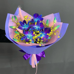 Коробка с цветами «Сумочка с Дендробиум» из гипсофил