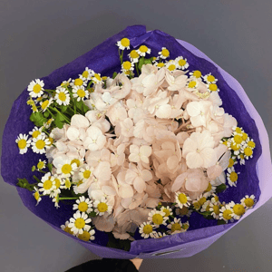 Букет с гортензией и ромашками