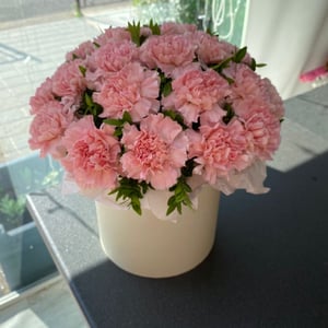 Шляпная коробка с цветами «Диантус» из гвоздик