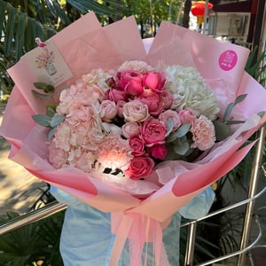 Букет «Гортензии и пионовидные розы»