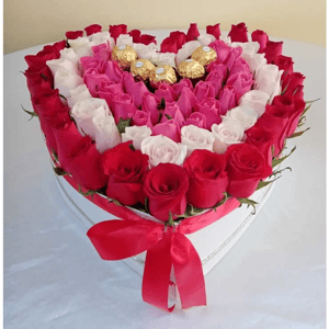 Коробка с цветами «Букет в сумочке» из роз и гвоздик