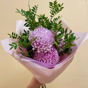 Букет из кустовой хризантемы и гипсофил