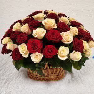 Корзина с цветами «101 комплимент»