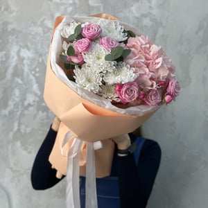 Букет «Зефир» из роз и хризантем