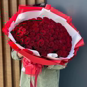 Букет 101 роза красная, красивый букет